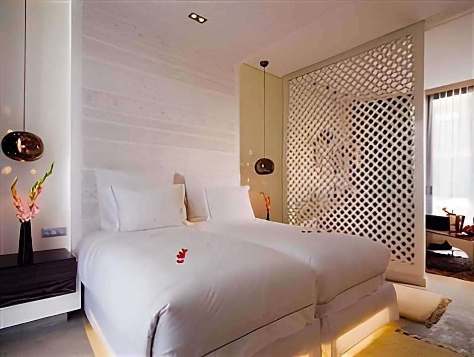 Deluxe is 323 square feet and includes a queen-size bed 150-154 width.
